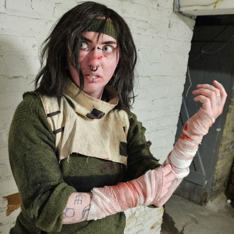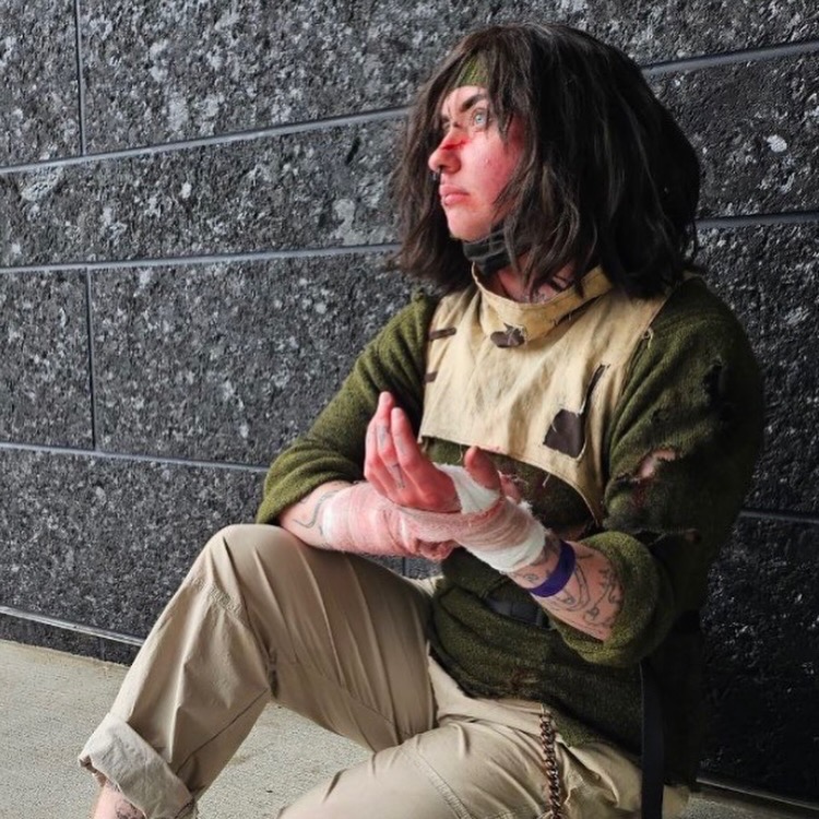 I debuted my Simon/Convict cosplay at Anime Milwaukee 2026 for their horror movie meetup and photoshoot. The clothes were secondhand, tailored (very poorly) by me, and the harness was made from recycled materials I already had (fun fact, the flashlight holster is made of beltloops from an old pair of pants and the straps were cut from a pair of overalls). The pants and harness were stained using coffee- and, yes, they do still smell like it.